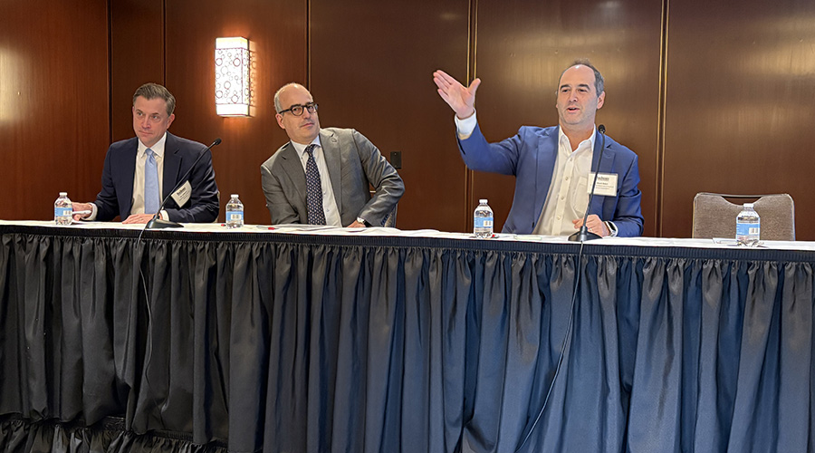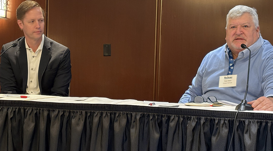 (From left) CSX’s top financial officer Kevin Boone and RailTrends program consultant Tony Hatch. New CSX leader Steve Angel — who became president and CEO in late September — is “in it to win it” when it comes to growth, Boone said.Jeff StaglWe are an exception to the rail growth story. We have a consistent strategy as it relates to growth. For example, our "land bridge" targets freight moving between Canada and Mexico across the United States. We expect to total $430 million in land bridge business in 2025, which would be double from last year. Traffic has been heavy on autos going north and grain and plastics going south. In terms of a merger, the scale, scope and complexity is different in every one. We were the smallest Class Is when we merged and we are still the smallest Class I. UP-NS clearly would be different in scope and size. You have to incorporate all the interchanges in Chicago and New Orleans, and all the points in between. The concessions and conditions worked into a merger are only as good as what’s carried out.