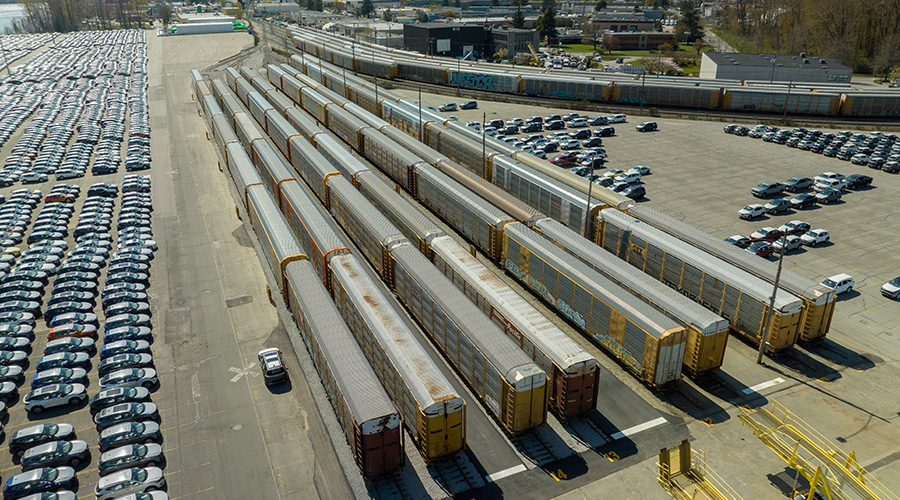 SRY Rail Link interchanges directly with BNSF Railway Co., Canadian Pacific Kansas City and CN, and indirectly with Union Pacific railroad via cross-border connections. The short line’s network enables vehicles at the Annacis terminal to be efficiently transferred to the Class Is through interchanges in New Westminster, British Columbia, allowing for nationwide and international rail distribution, says Rana.