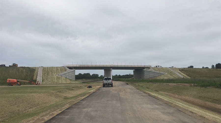 The project to create the bridge over CN track included construction of a two-span concrete bulb-tee beam bridge; installation of a 10-foot wide pedestrian sidewalk; single-lane traffic configuration in each direction; installation of 24,000 square feet of retaining walls to support the embankments; and construction of 4,000 square feet of precast modular T-wall retaining structures, according to the company’s post.